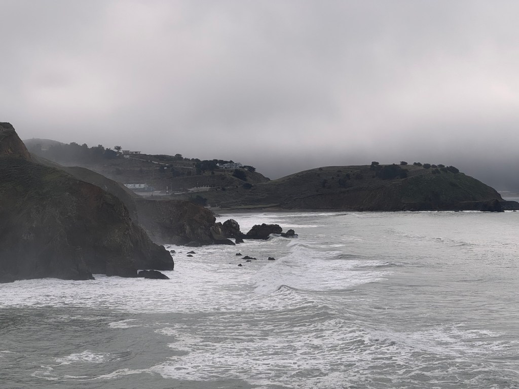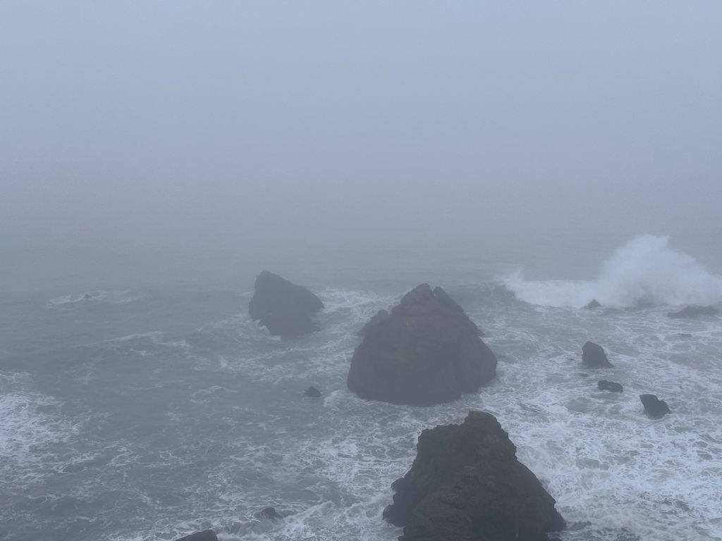 The fog had been coming and going as I drove to this location and I was hopeful there would be some visibility once I got to the top. After seeing the waves crashing into the beach and disappearing in the not-so-far distance, I was not optimistic: