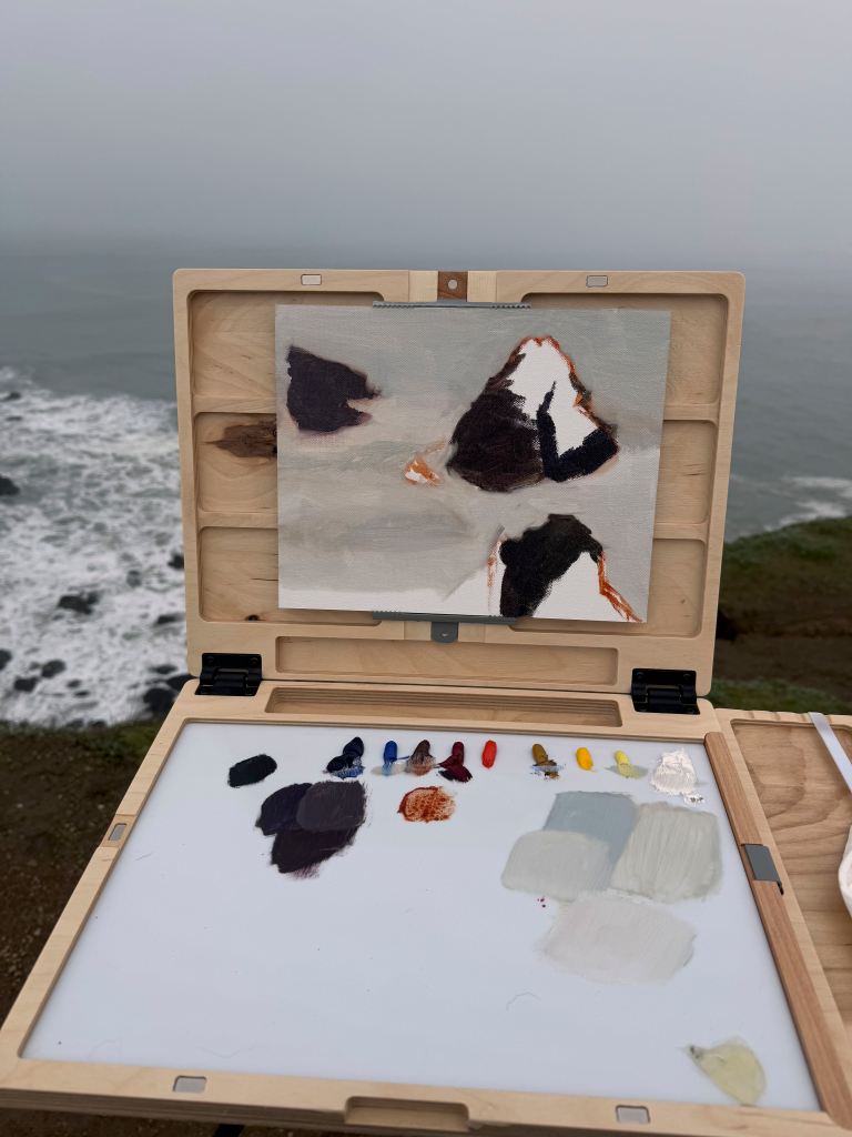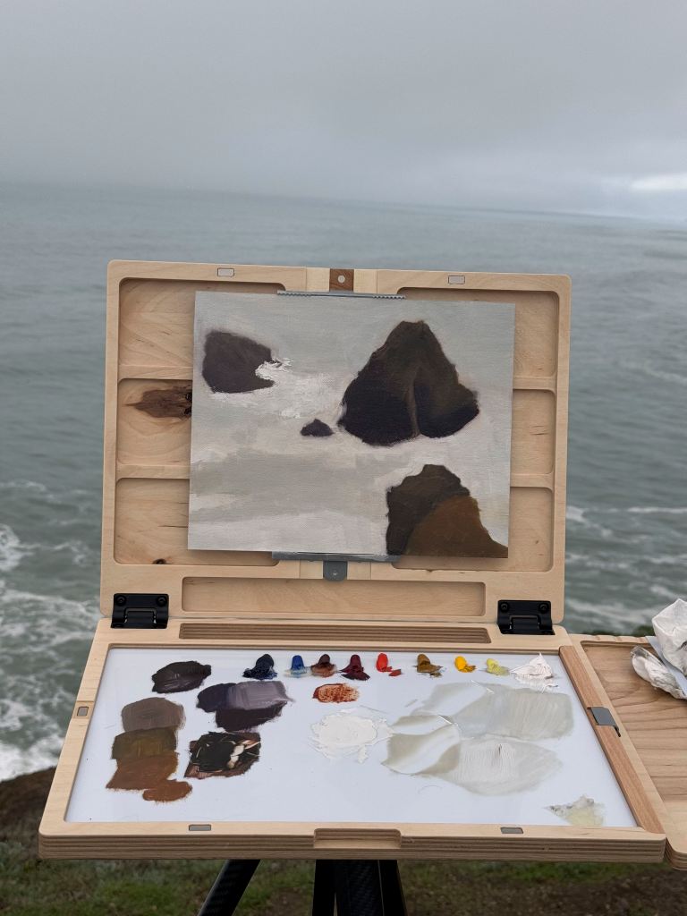 I walked out to the edge of the point and all I could make out were a few large rocks in the ocean. I decided to go ahead and paint that despite visibility being low. Here was the scene I decided to paint: