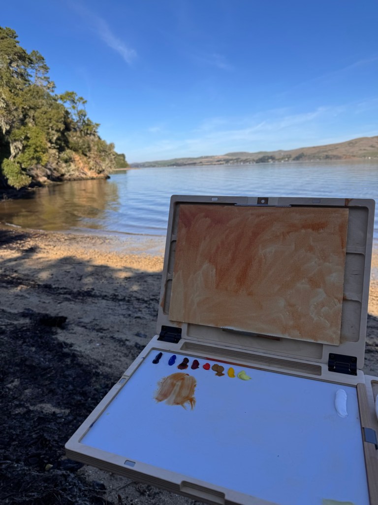 For day 5 of painting month, I went up to Point Reyes, CA and made a painting at Heart’s Desire Beach. I planned to also go to Point Reyes Lighthouse but I ran out of time. I’ll add that to my list of future locations to paint. Noting here that I’m 0/2 for lighthouses.