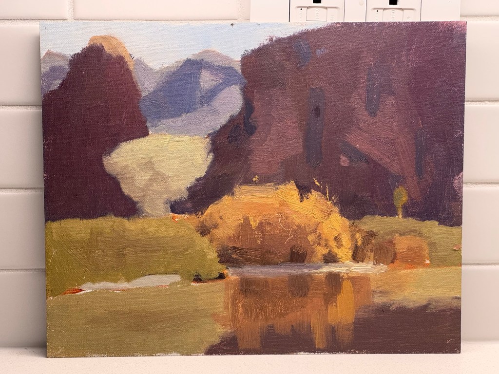 To restate what I started this post with, the point of this workshop was not to create finished paintings. I took that to heart and really embraced Mitch’s principles. As a result, the paintings I created are not strong paintings but they do represent putting these principles into practice. With a bit of work in the studio, these could certainly become successful paintings due to the foundation of color and value relationships I worked on.