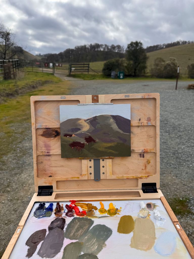 For day 18, I only had a half day planned so I hoped to work on a 6×8 study in the Diablo Foothills again. I had so much fun when I was there on Day 2 that I wanted to see what it would be like under different lighting conditions.